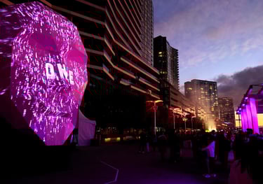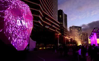 Experimenta joins with the City of Melbourne to create a public Art trail never seen before. DAP director Georgie Pinn is commissioned to create a giant projection mapped face to tell stories in new ways and connect strangers