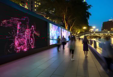 SpartX is our modular play ecosystem, pods and pop-up playfields that fuse physical movement with real-time visuals. Designed for fan parks and precinct activations: fast onboarding, high throughput, and big “I want a turn” energy. Because it’s generative and responsive, the content is always changing, each session creates a fresh, shareable moment.
