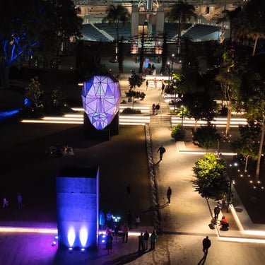 Night-time public artworks that create atmosphere, dwell, and a little collective magic.