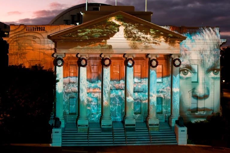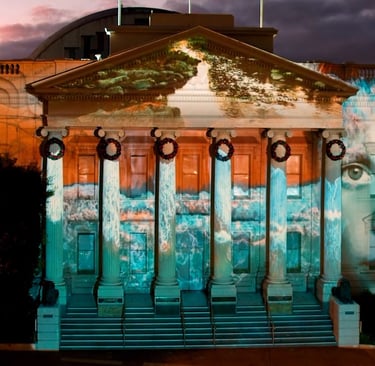 XMAS IN GEELONG (Geelong City Council) is an 11-minute projection-mapped light story that turns the Town Hall into a “gift” of belonging, wrapped in the visual languages of Geelong’s cultural communities, with an original site-specific score. A civic-scale night moment designed to stop passers-by and anchor foot traffic through emotion, not clichés